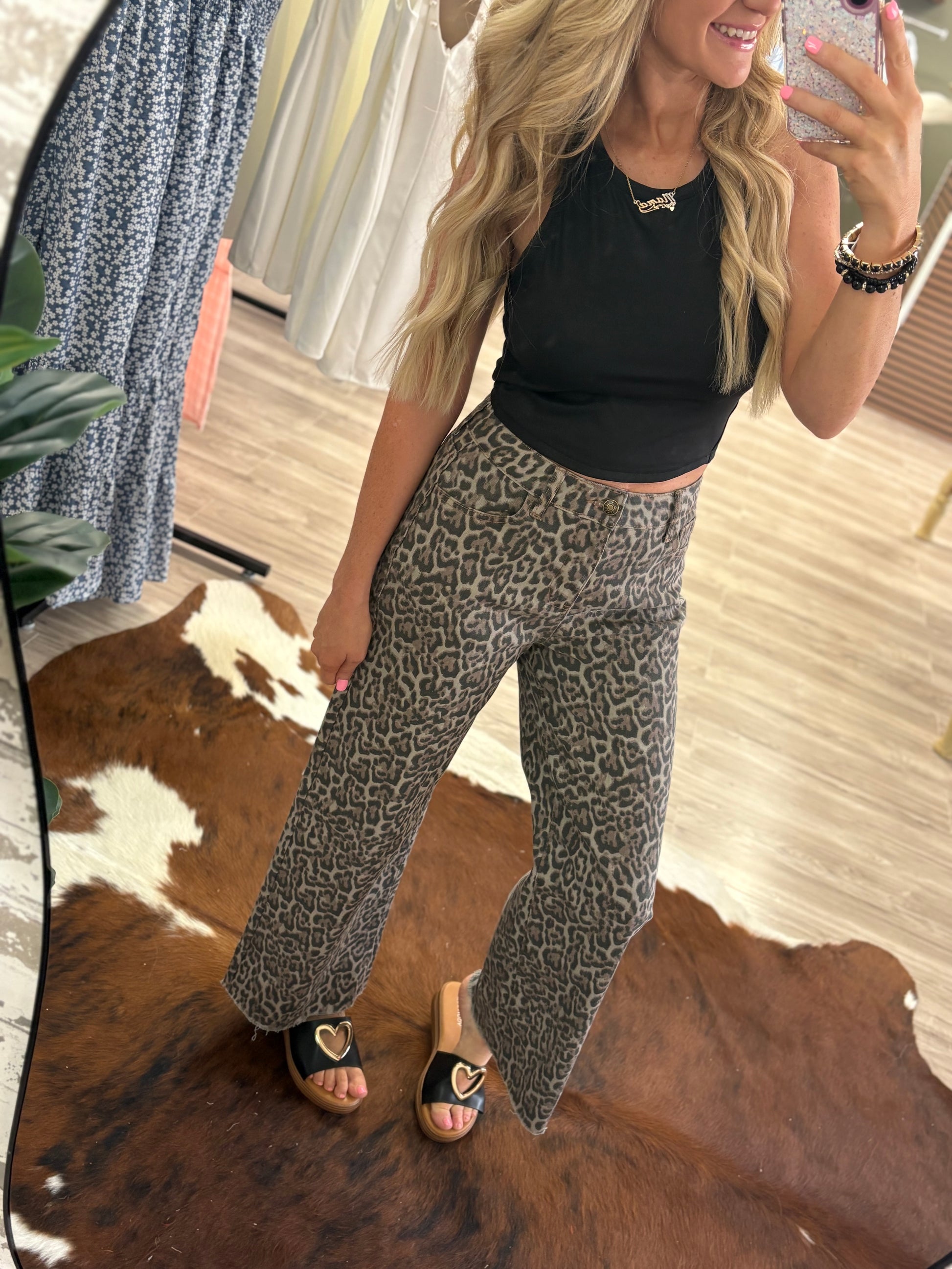 Leopard denim jeans