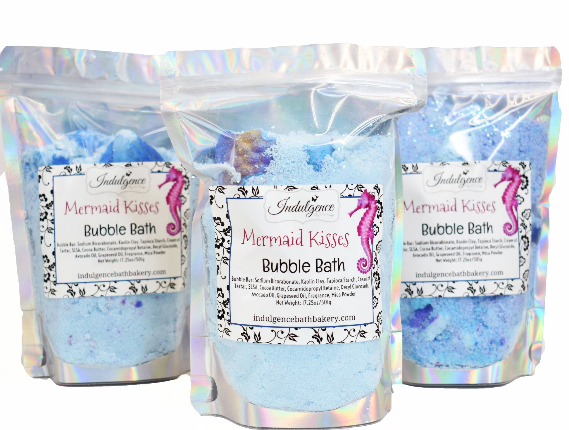 Our crumbles are a mixed of Epsom salts, High Mineral Sea Salts, pieces of our Mermaid bubble bar tails, and biodegradable Mermaid Trails Glitter.