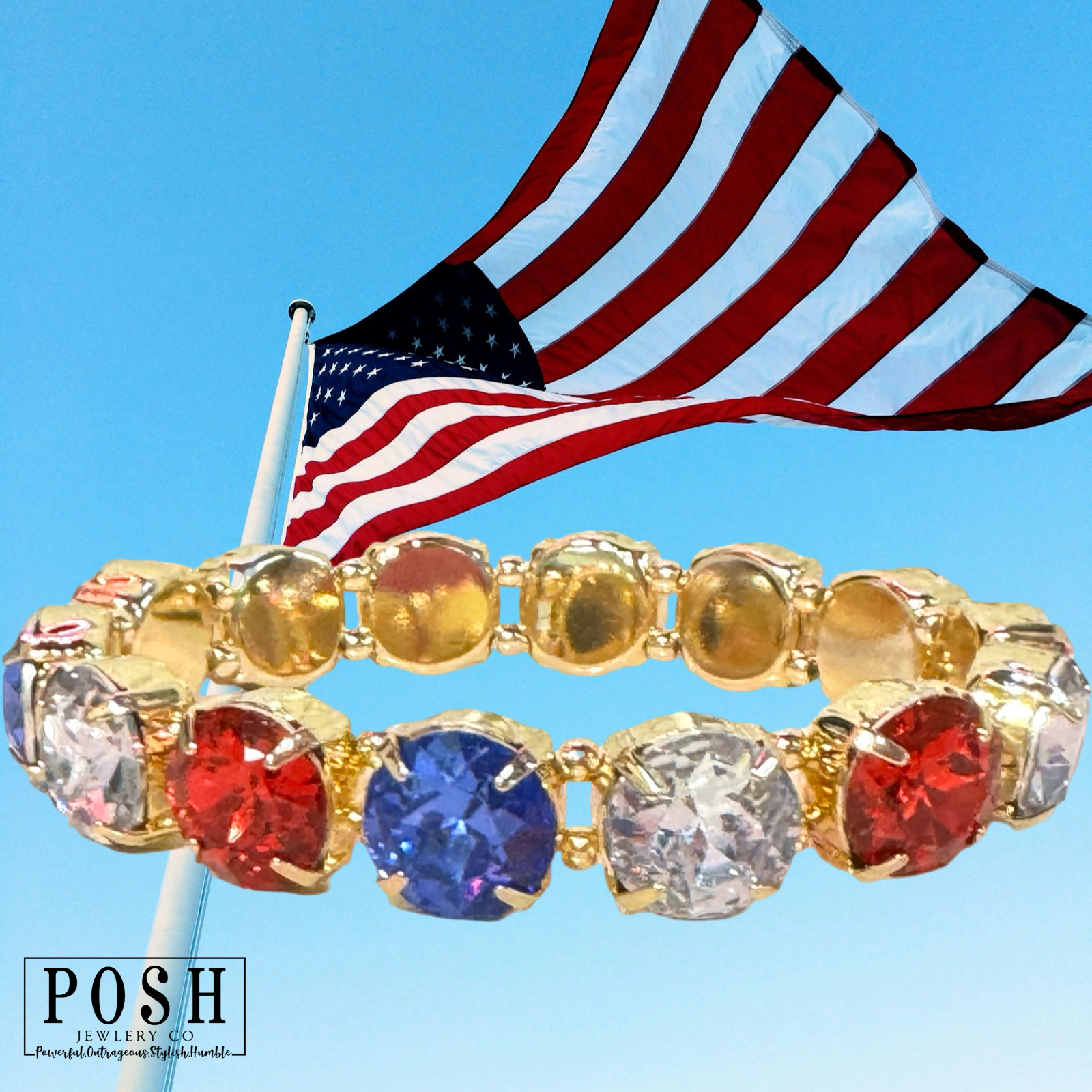 Patriotic small round rhinestone bracelet